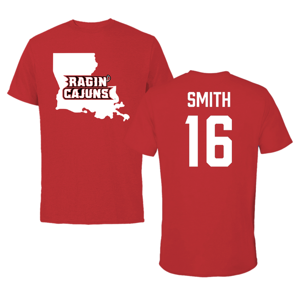 University of Louisiana at Lafayette Baseball Red State Tee - #16 Parker Smith