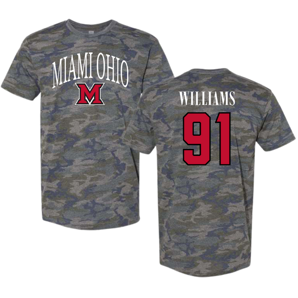 Miami University (Ohio) Football Vintage Camo Tee - #91 Sam Williams
