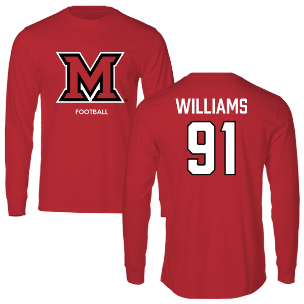 Miami University (Ohio) Football Red Long Sleeve - #91 Sam Williams