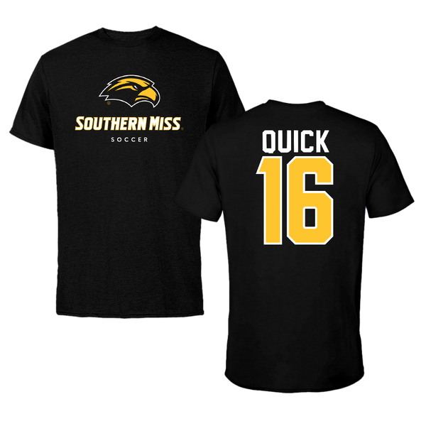 The University of Southern Mississippi Soccer Black Block Tee - #16 Shaelynn Quick