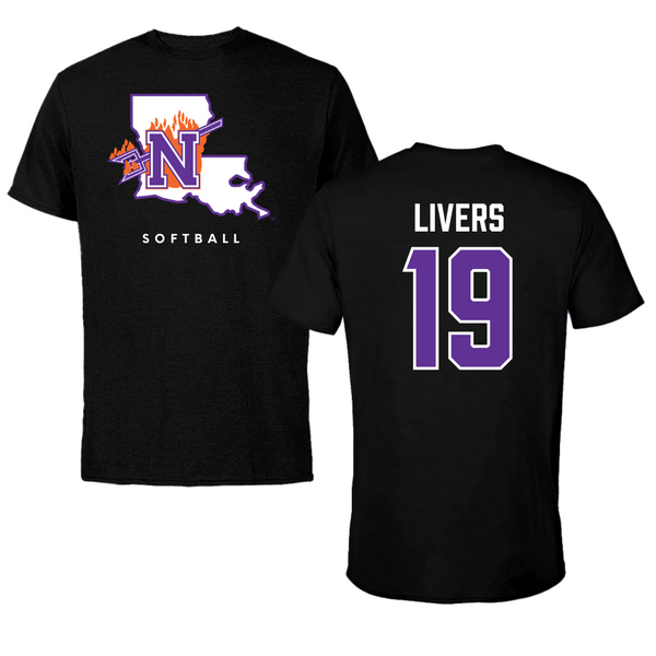 Northwestern State University Softball Black Block Tee - #19 Sophia Livers