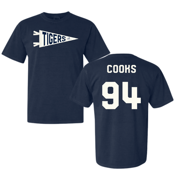 Jackson State University Football Navy Pennant Comfort Colors Tee - #94 Stanley Cooks