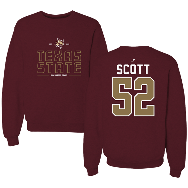Texas State University Football Maroon General Crewneck - #52 Trenton Scott