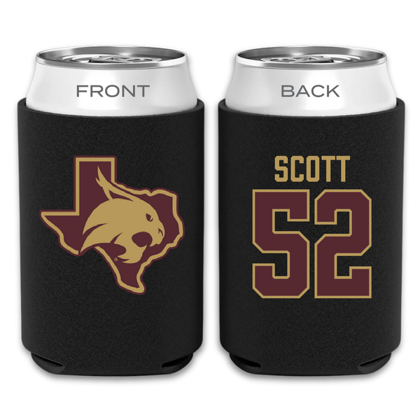 Texas State University Football Black Can Cooler - #52 Trenton Scott