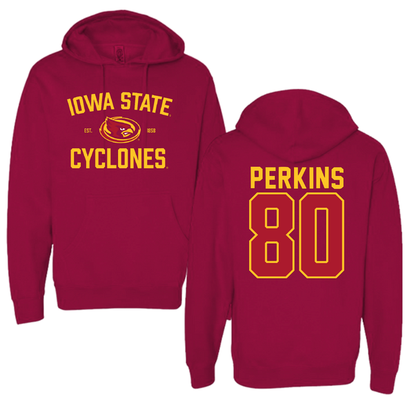 Iowa State University Football Cardinal General Hoodie - #80 Tyler Perkins