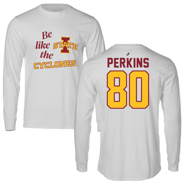 Iowa State University Football Light Gray Be Like Us Long Sleeve - #80 Tyler Perkins