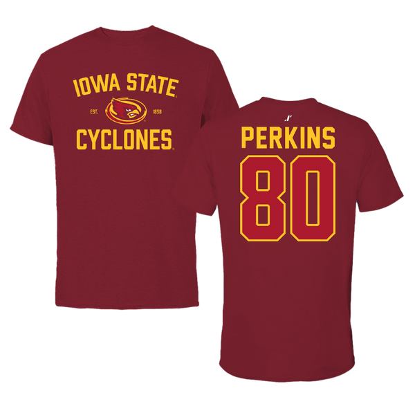 Iowa State University Football Cardinal Tee - #80 Tyler Perkins