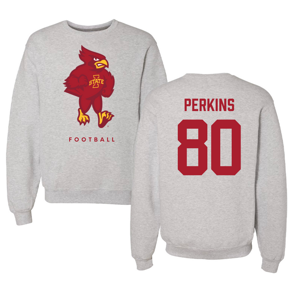 Iowa State University Football Gray Crewneck - #80 Tyler Perkins