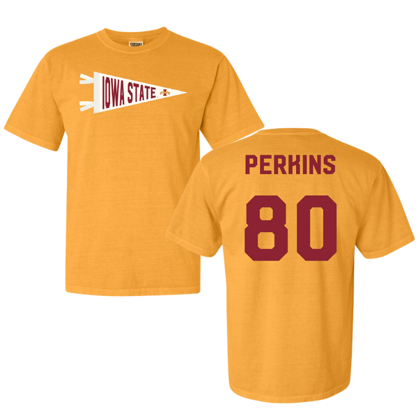 Iowa State University Football Gold Pennant Comfort Colors Tee - #80 Tyler Perkins
