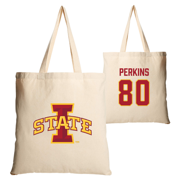 Iowa State University Football Tan Canvas Tote Bag - #80 Tyler Perkins