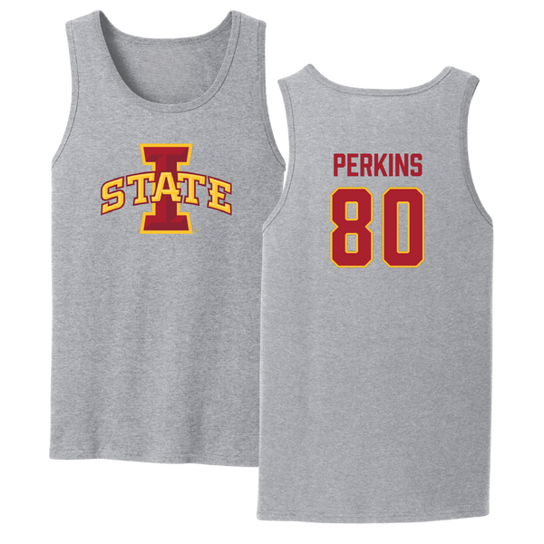 Iowa State University Football Sport Gray Tank Top - #80 Tyler Perkins