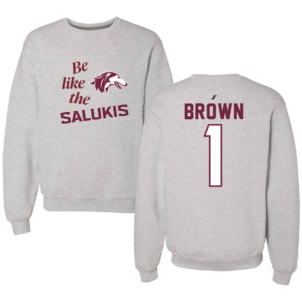 Southern Illinois University at Carbondale Basketball Light Gray Be Like Us Crewneck - #1 Tyranny Brown