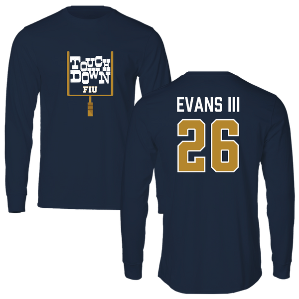 Florida International University Football Navy Touchdown Long Sleeve - #26 Victor Evans III