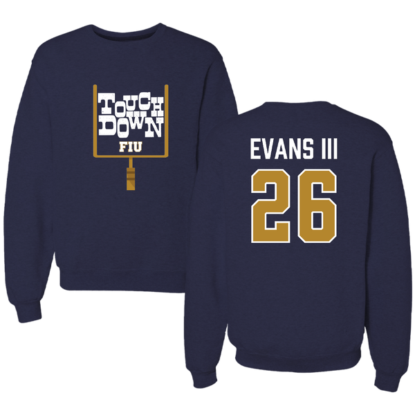 Florida International University Football Navy Touchdown Crewneck - #26 Victor Evans III
