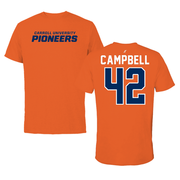 Carroll University Football Orange Tee - #42 Will Campbell