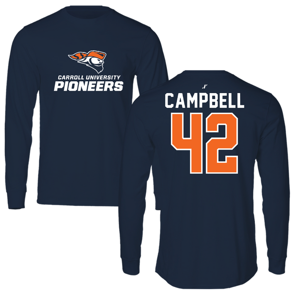 Carroll University Football Navy Touchdown Performance Long Sleeve - #42 Will Campbell