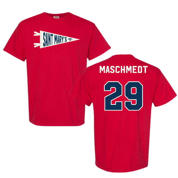Saint Mary's College of California Soccer Red Pennant Comfort Colors Tee - #29 Will Maschmedt