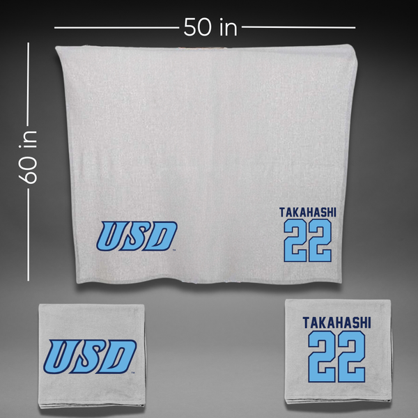 University of San Diego Football Gray Blanket - #22 Yosei Takahashi