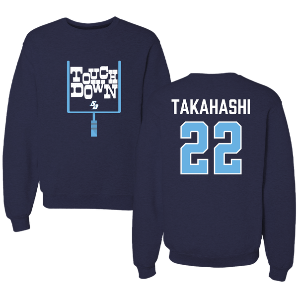 University of San Diego Football Navy Touchdown Crewneck - #22 Yosei Takahashi