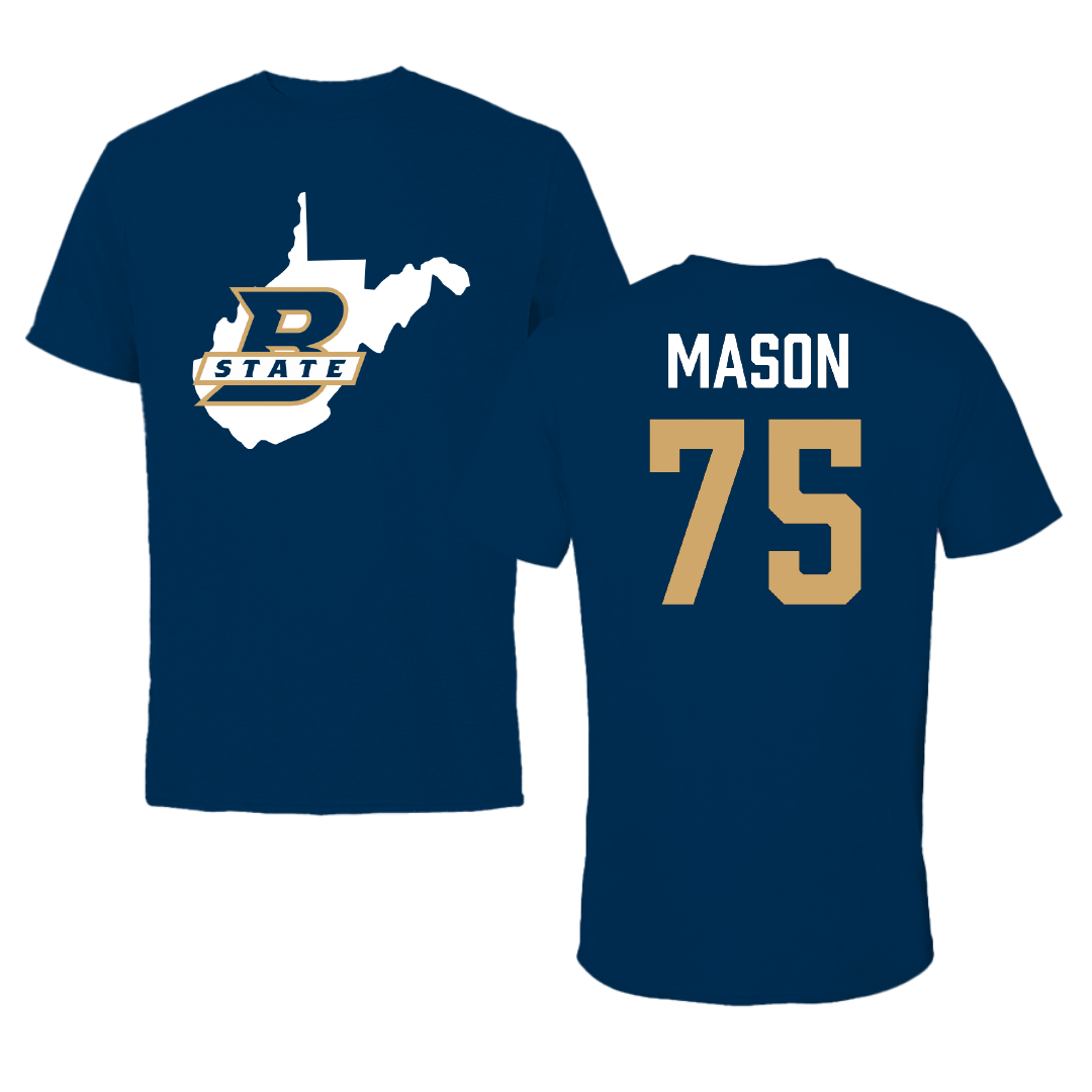 Bluefield State University Football Navy State Tee - #75 Tamari Mason