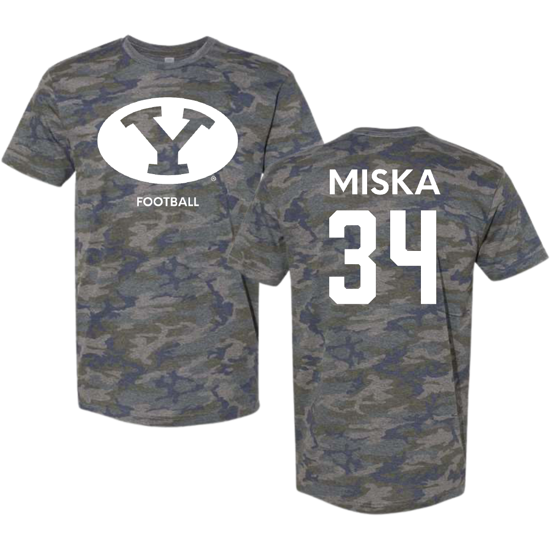 Brigham Young University Football Vintage Camo Tee - #34 Charles Miska