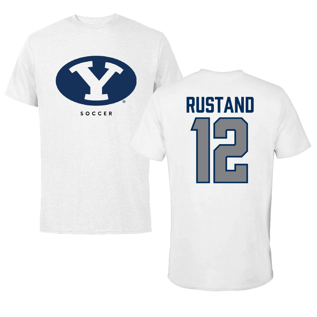 Brigham Young University Soccer White Tee - #12 Ella Rustand