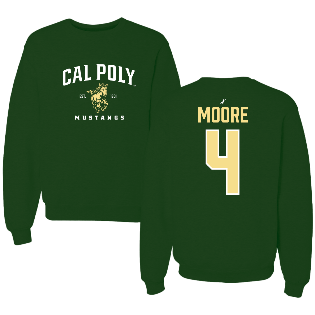 Cal Poly Football Forest Green General Crewneck - #4 Calvin Moore