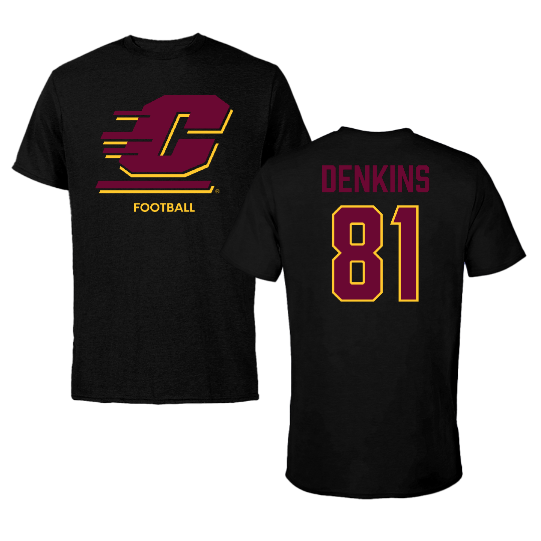 Central Michigan University Football Black Tee - #81 Malik Denkins