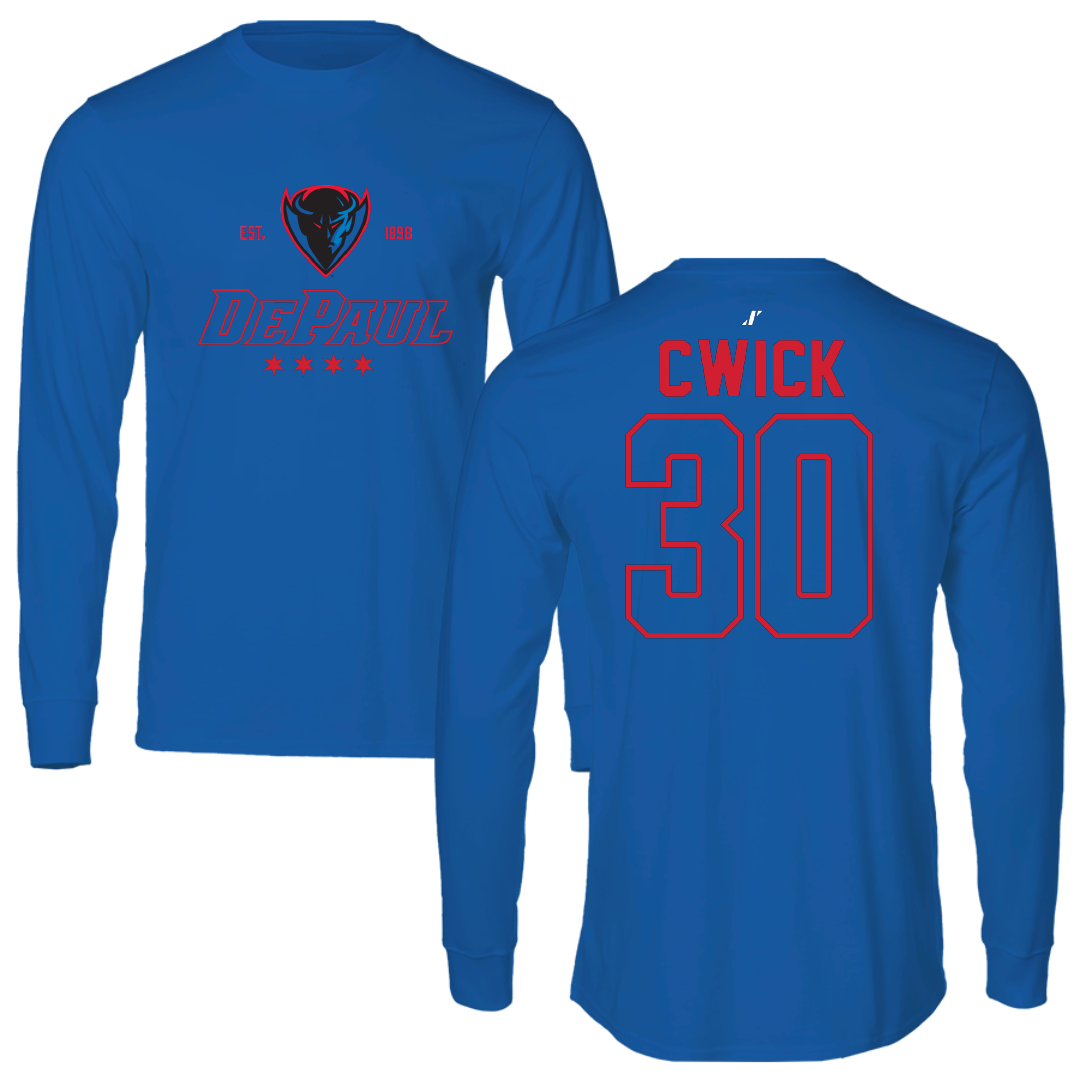 DePaul University Softball Blue General Performance Long Sleeve - #30 Brooke Cwick