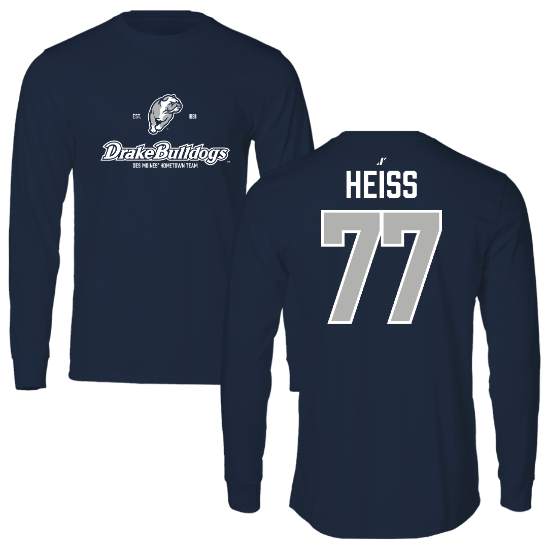 Drake University Football Navy General Performance Long Sleeve - #77 Drew Heiss