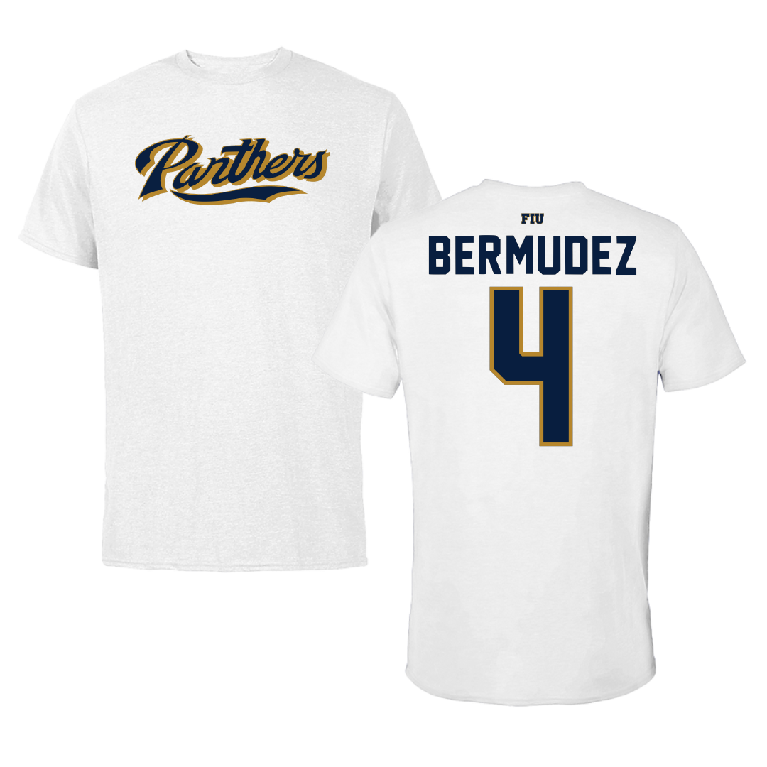 Florida International University Baseball White Tee - #4 Derek Bermudez