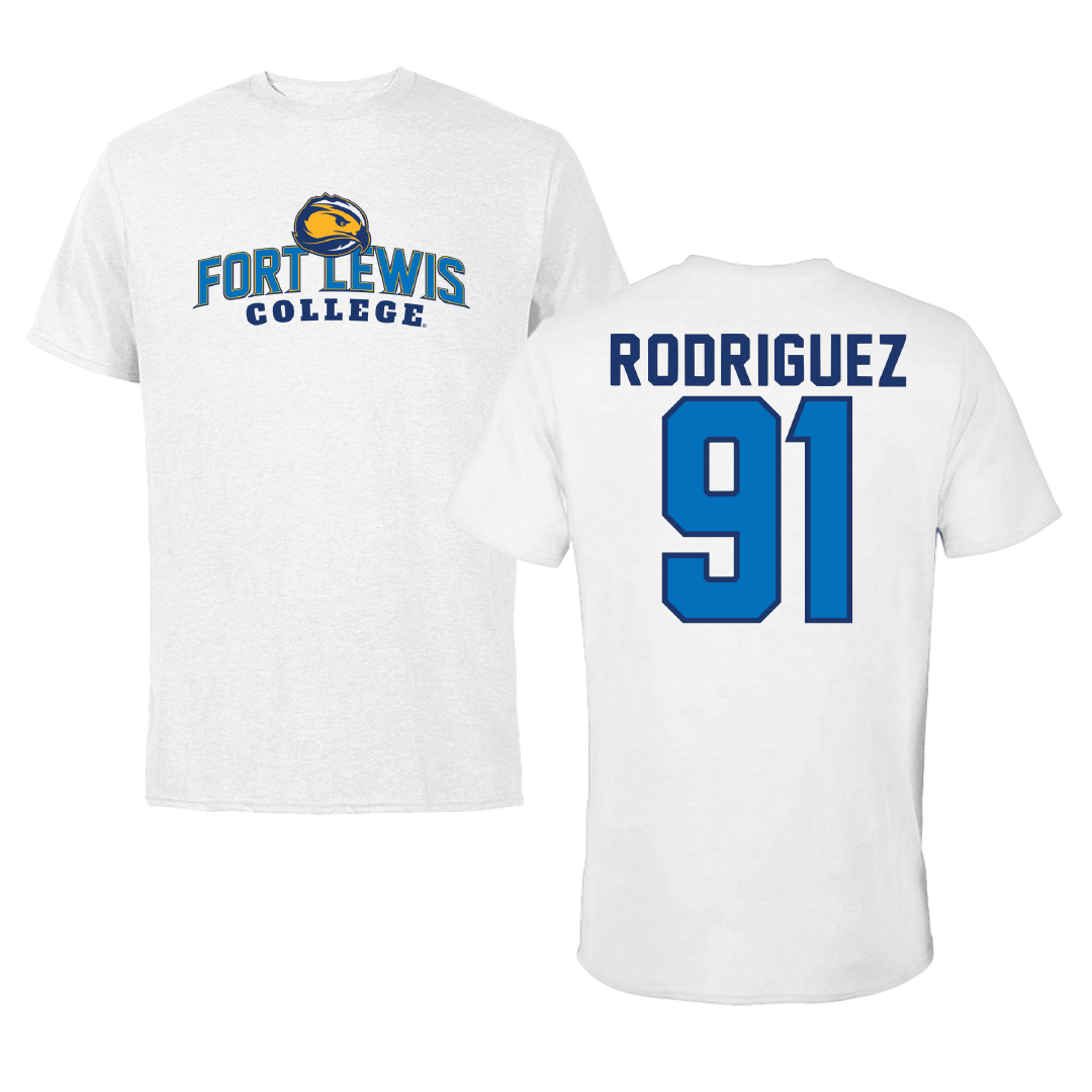 Fort Lewis College Football White Performance Tee - #91 Donovan Rodriguez