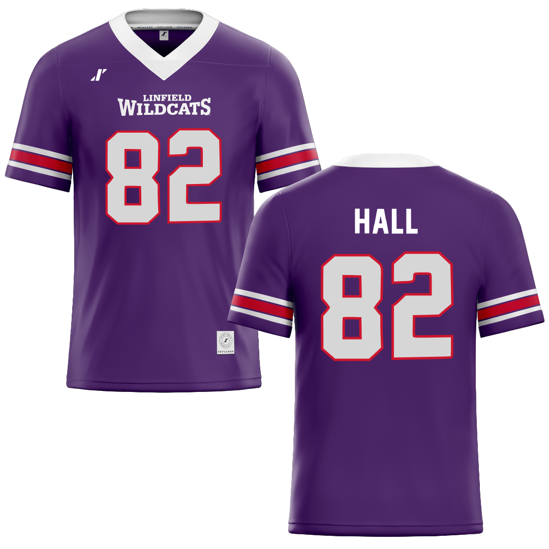 Linfield University Purple Football Jersey - #82 Caleb Hall
