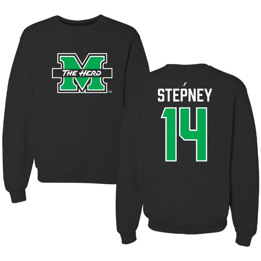 Marshall University Football Black Crewneck - #14 Dejavion Stepney