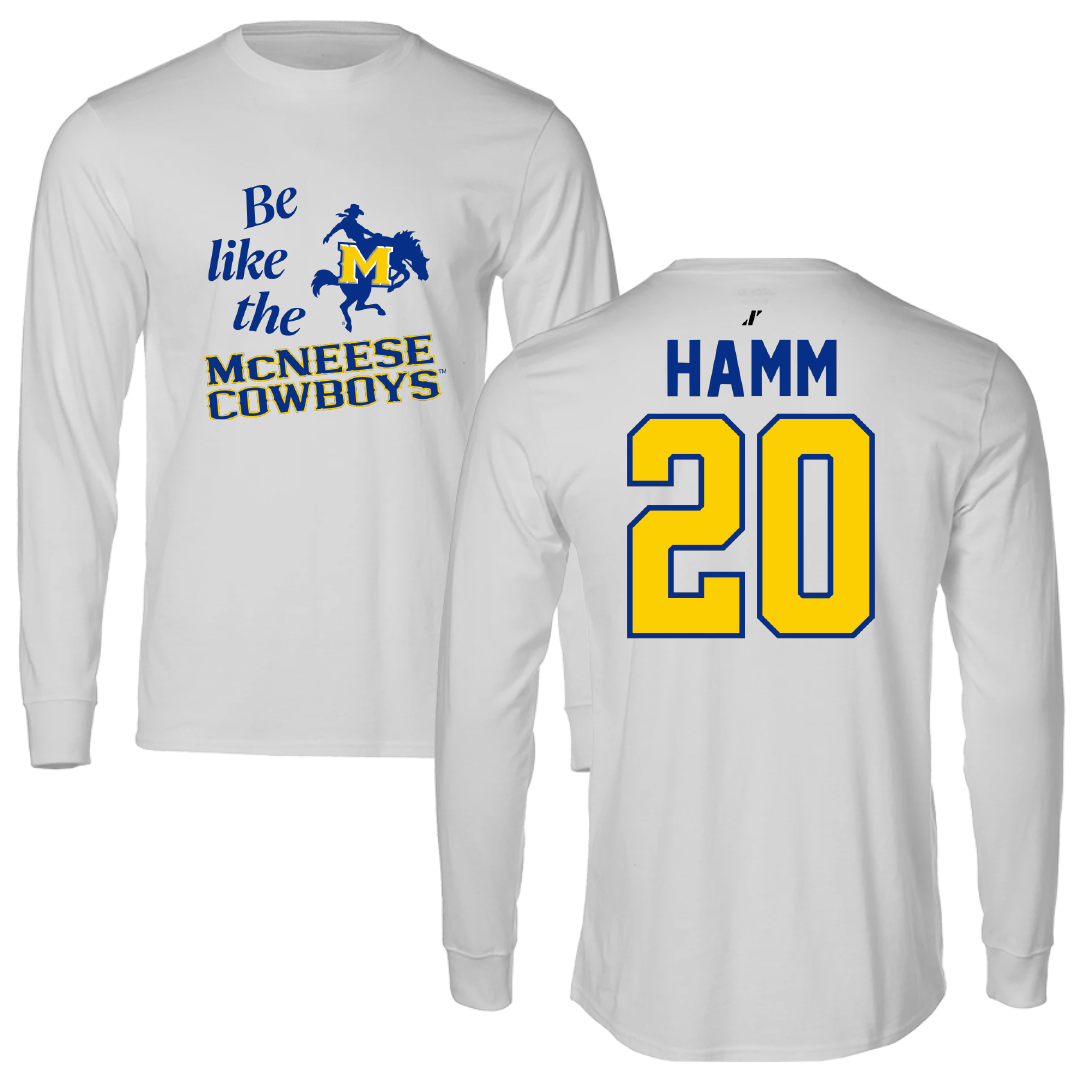 McNeese State University Football Light Gray Be Like Us Performance Long Sleeve - #20 Coleby Hamm