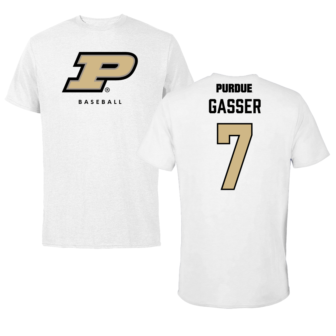 Purdue University Baseball White Performance Tee - #7 Camden Gasser