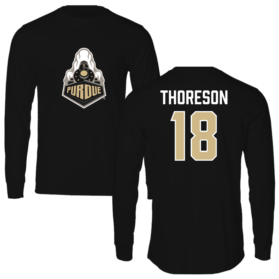 Purdue University Soccer (W) Black Performance Long Sleeve - #18 Angelina Thoreson
