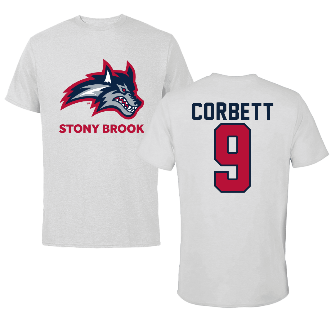 Stony Brook University Soccer Light Gray Tee - #9 Maya Corbett