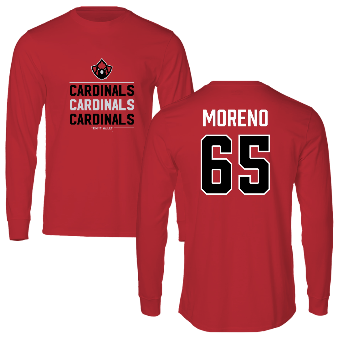 Trinity Valley Community College Football Red General Long Sleeve - #65 Luis Moreno
