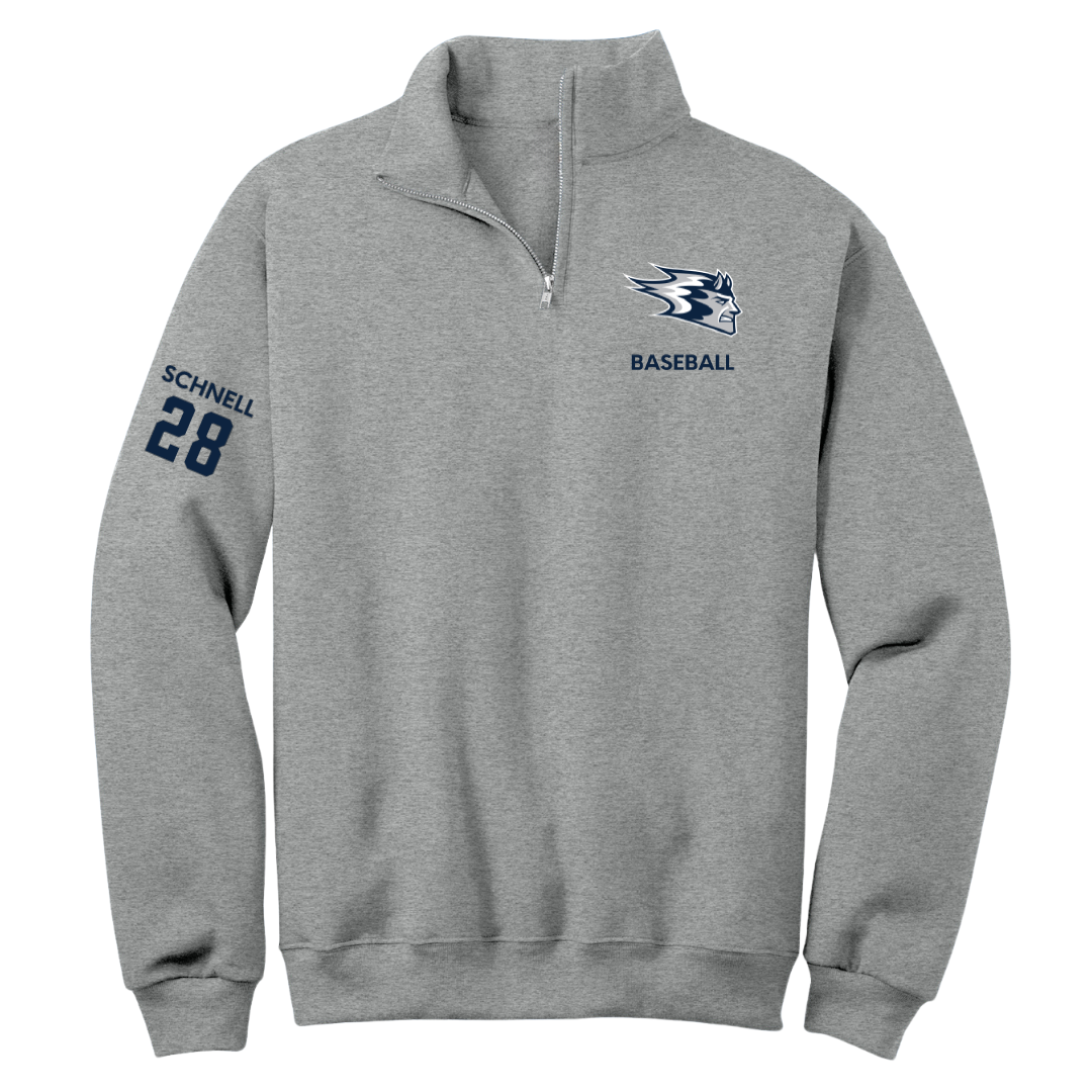 University of Wisconsin-Stout Baseball Sport Gray Quarter-Zip - #28 Justin Schnell
