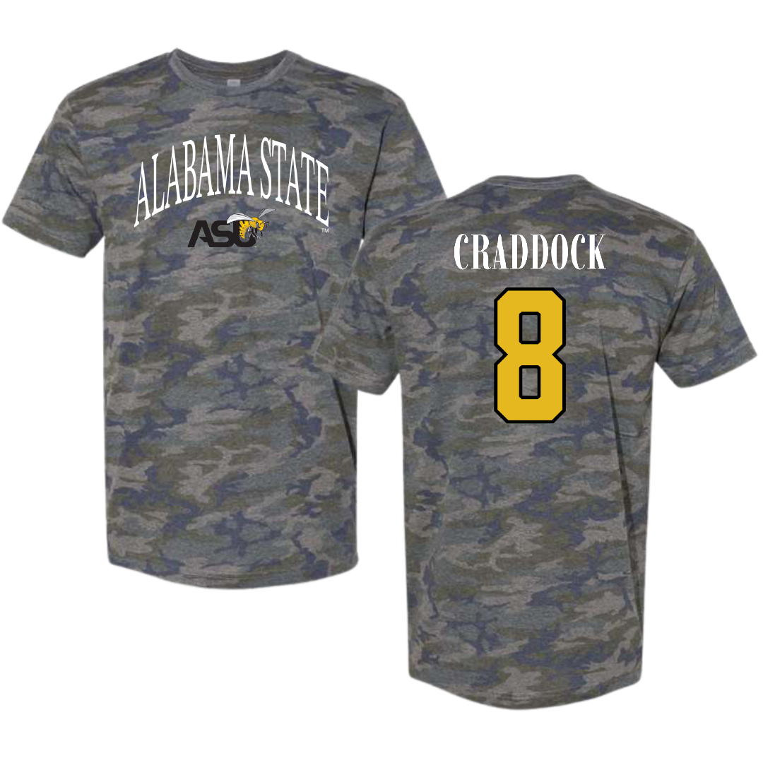 Alabama State University Flag Football Vintage Camo Tee - #8 Brooke Craddock