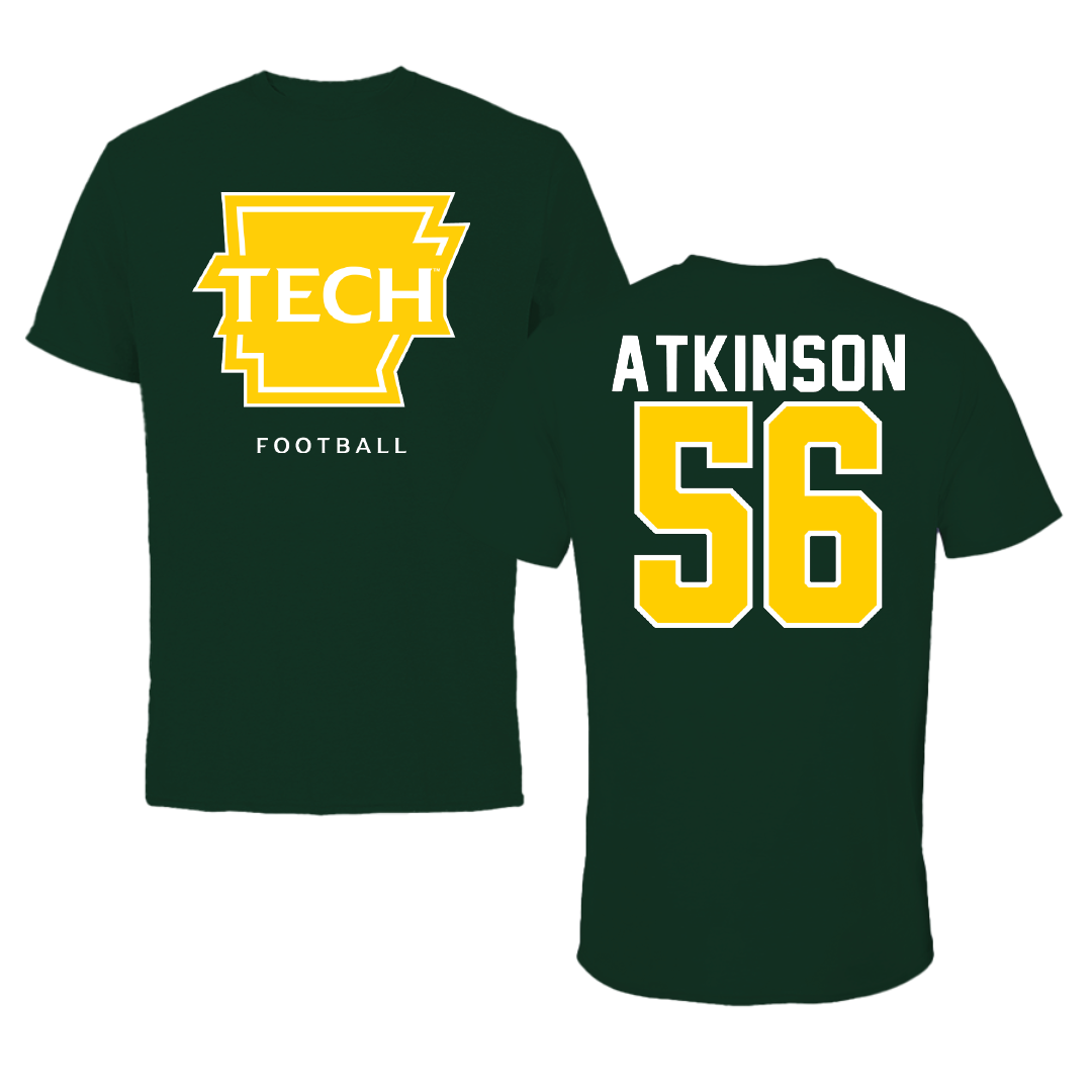 Arkansas Tech University Football Forest Green Tee - #56 Luke Atkinson