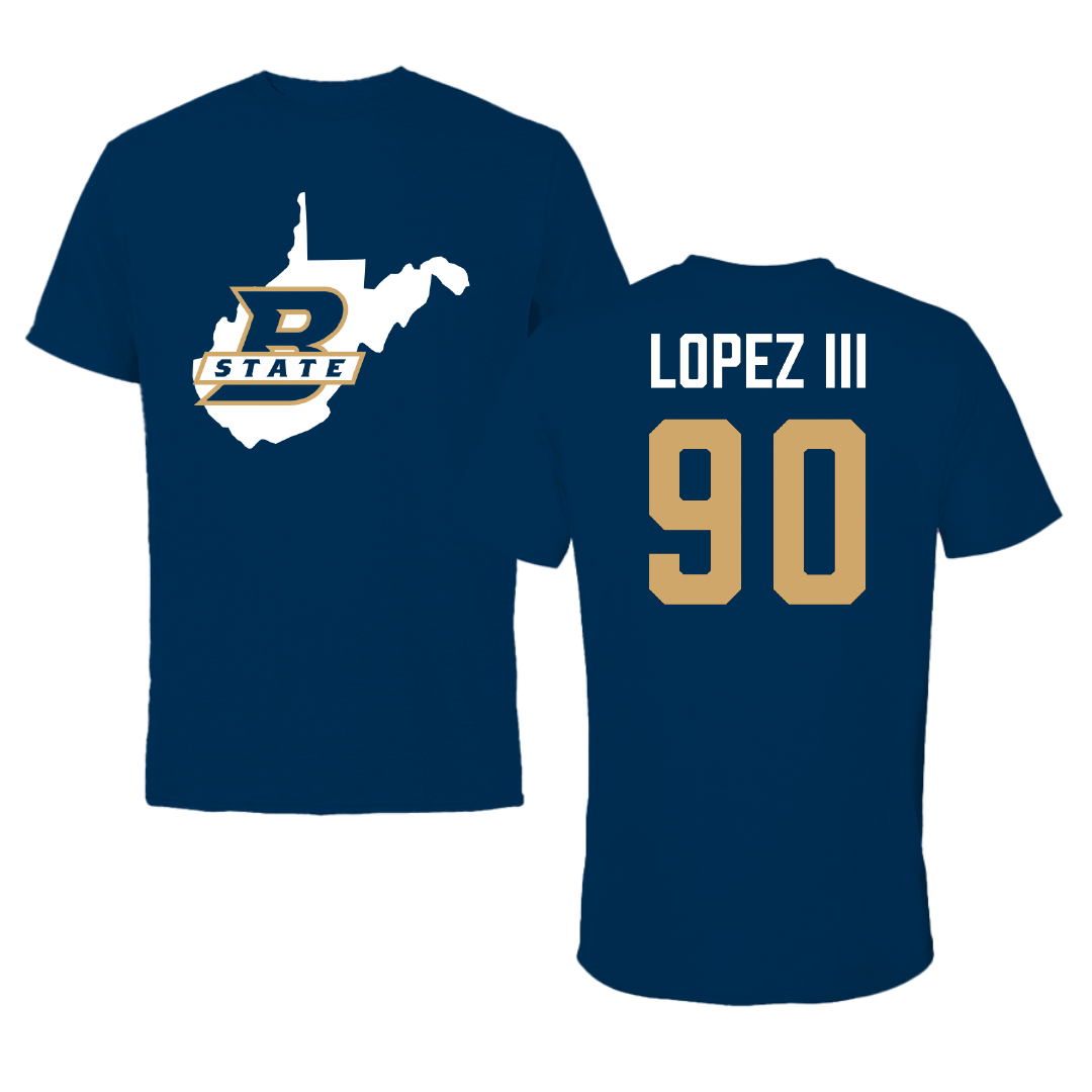 Bluefield State University Football Navy State Tee - #90 Omar Lopez III