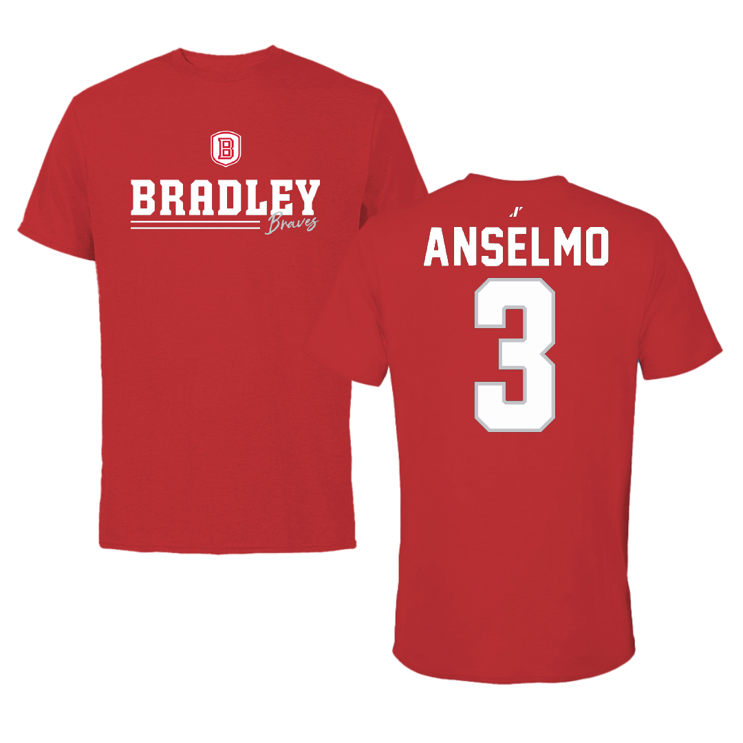 Bradley University Baseball Red General Performance Tee - #3 Dominic Anselmo