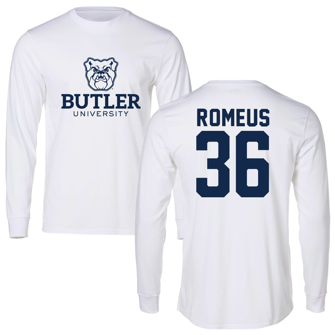 Butler University Football White Performance Long Sleeve - #36 Elijah Romeus