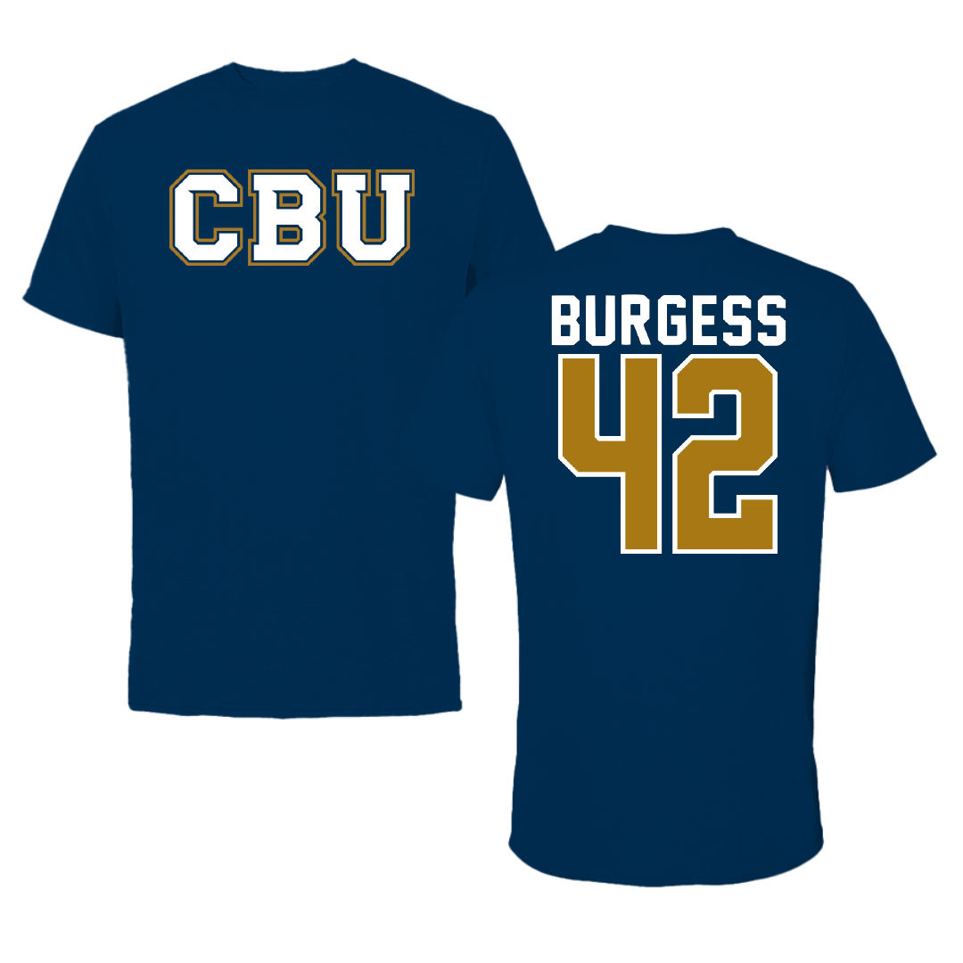 California Baptist University Baseball Navy Tee - #42 Sam Burgess