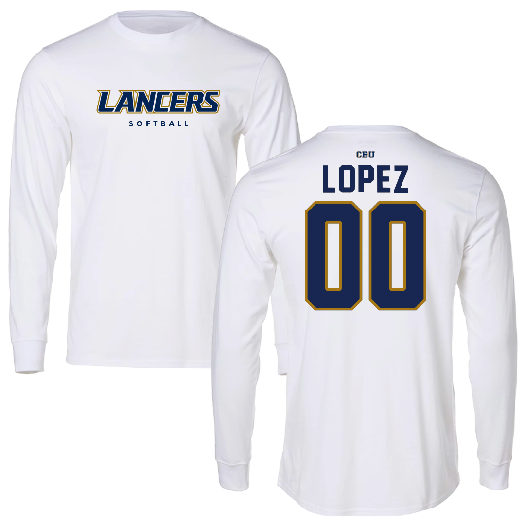 California Baptist University Softball White Performance Long Sleeve - #00 Laci Lopez