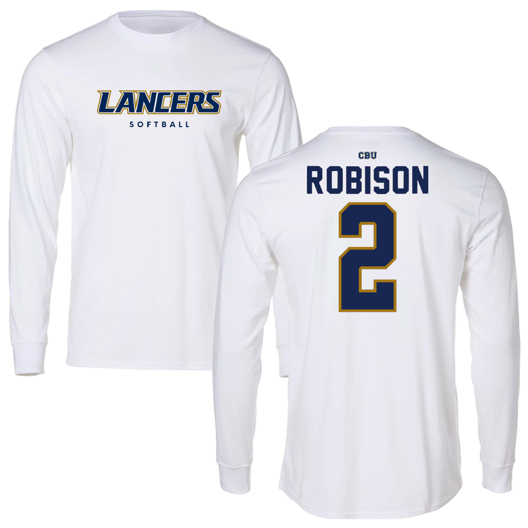 California Baptist University Softball White Performance Long Sleeve - #2 stevie robison