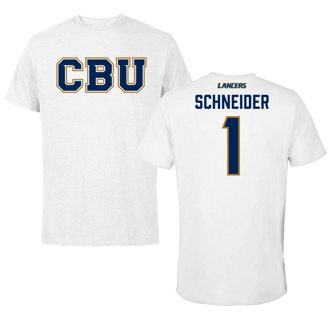 California Baptist University Water Polo White Tee - #1 Tyanna Schneider