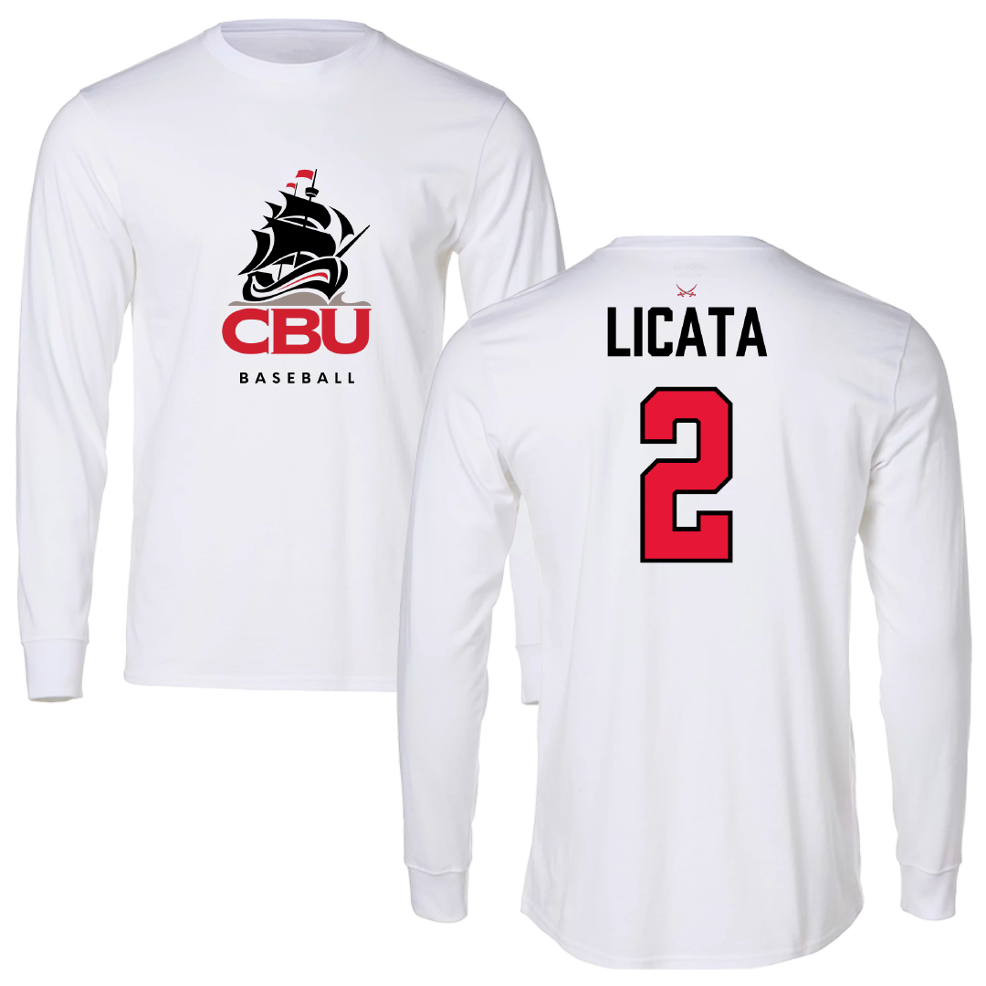 Increase quantity for Christian Brothers University Baseball White Long Sleeve - #2 Jackson Licata